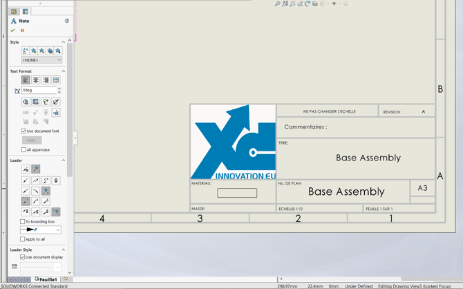 Right-click on sheet 1, choose "Edit Sheet Format" to conform it to specific standards and part properties. Afterward, adjust the layout of lines and various attributes in your title block.