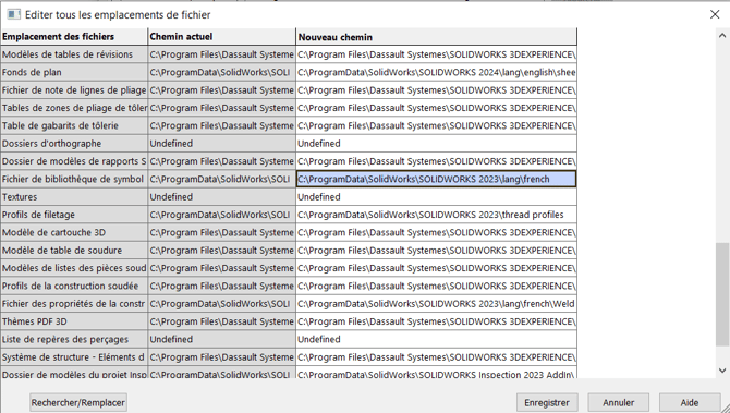 .Ici par exemple, il faut remplacer "2023" par "20243. Pour ce faire, Cliquer sur "Tout éditer", défiler jusqu'à "Fichiers de bibliothèques" de symboles puis dans la colonne "Nouveau chemin", remplacer 2023 par 2024.