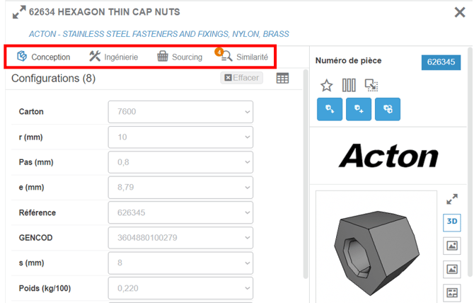 Si vous avez déjà un modèle 3D et que vous cherchez une pièce similaire dans Part Supply :