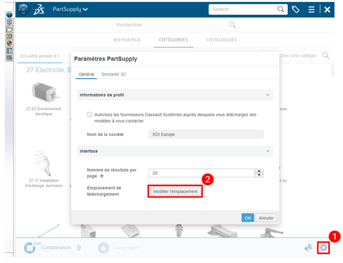 Avant de commencer à utiliser Part Supply, il faut définir un dossier de téléchargement dans lequel les composants vont temporairement se mettre :