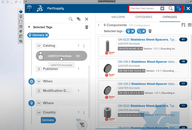 la fenêtre 3DEXPERIENCE > Bibliothèque de conception > Composants 3D PartSupply
